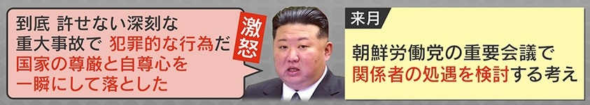 これに対し、金総書記は「到底許せない深刻な重大事故で、犯罪的な行為だ。国家の尊厳と自尊心を一瞬にして落とした」と大激怒しています。また、2025年6月に行われる朝鮮労働党の重要会議で関係者の処遇を検討する考えを示しています。