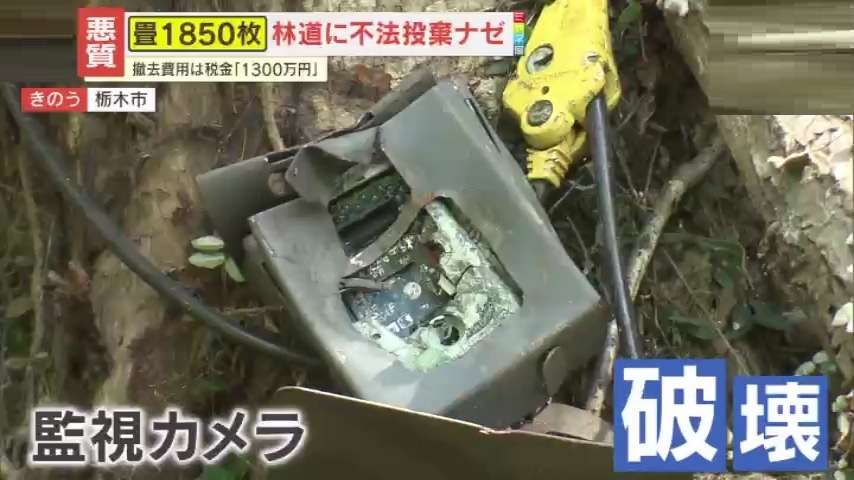 栃木市は、こうした不法投棄の現状を受け、対策として、林道の通行止めや夜間パトロールの実施・監視カメラの増設を行っています。しかし、木に設置していた監視カメラ合わせて4台が、盗難や破壊の被害に遭いました。市は、器物損壊と盗難で被害届を提出しているといいます。