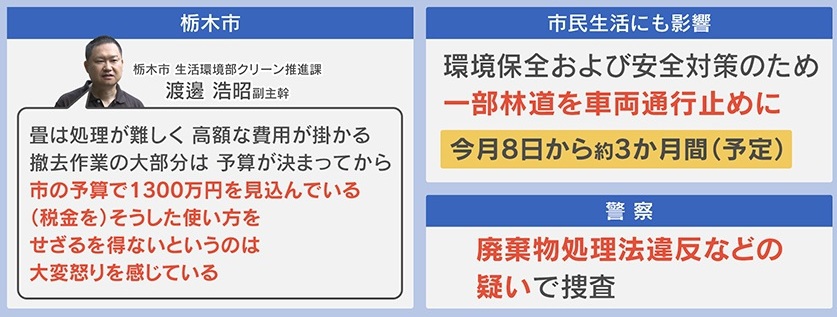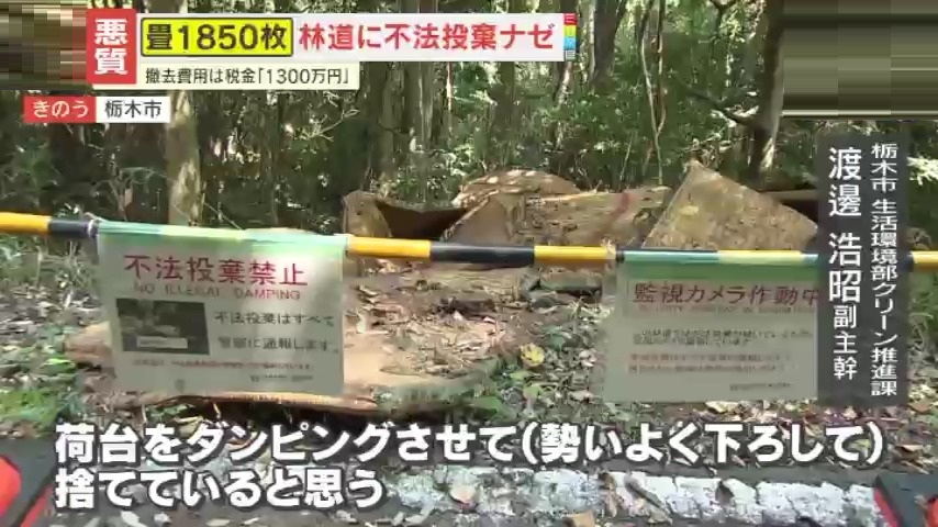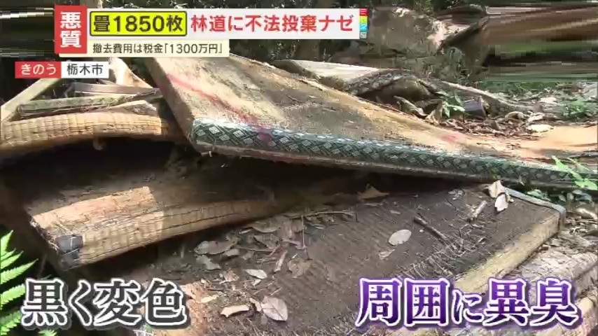 【悪質】畳1850枚が林道に不法投棄!撤去費用は税金1300万円、迷惑行為に栃木市担当者が怒りの声 異臭や通行止めなど近隣住民に影響も…