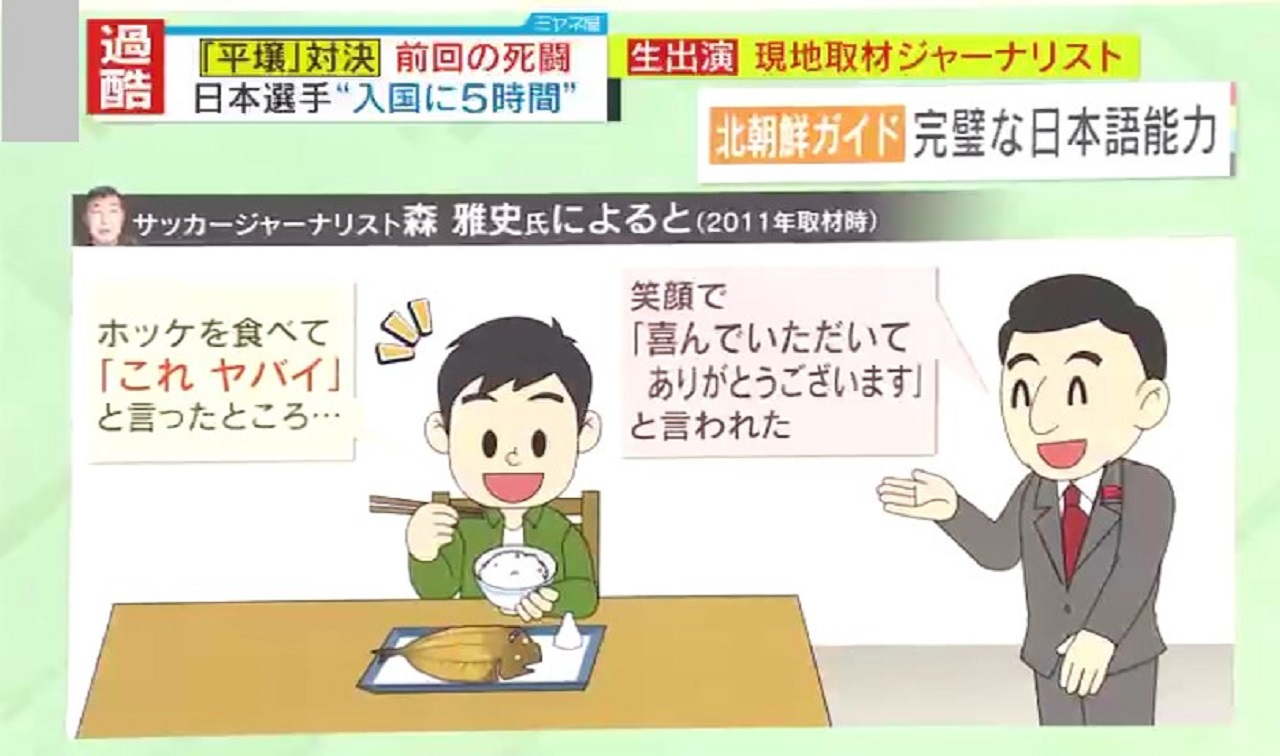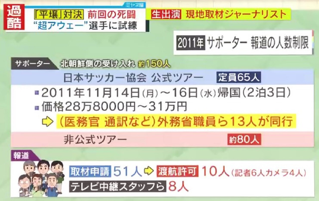 「北朝鮮が生放送で実況中継をすることは、滅多にないです。以前、南アフリカW杯で、ブラジルを相手に敗れたものの善戦し、気を良くして次のポルトガル戦を実況中継にしたところ、7-0でボロ負けしてアナウンサーも司会者も解説者もぐうの音も出なかったというハプニングがありましたので、今回も生放送はしないと思います。録画放送も、恐らく勝った場合はしますけど、負けた場合はしないと思います」