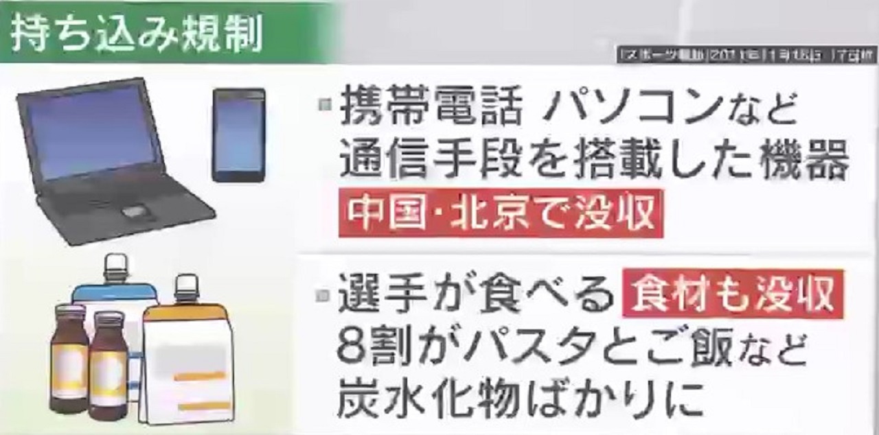 北朝鮮には持ち込み規制があり、携帯電話・パソコンなど通信手段を搭載した機器は事前に没収。選手が食べる食材も没収され、8割がパスタ・ご飯など炭水化物ばかりだったといいます。また、選手らへの『禁止3通達』として、「散歩」「買い物」「政治的質問への回答」を禁止されていました。