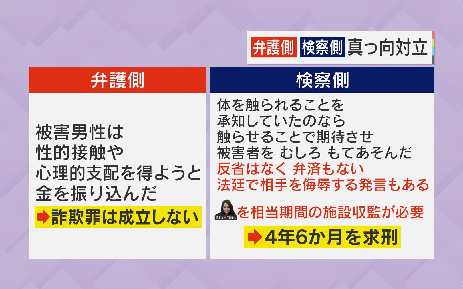 須藤被告の弁護側は、「被害男性は、性的接触や心理的支配を得ようと金を振り込んだ」とし、「詐欺罪は成立しない」と主張していました。