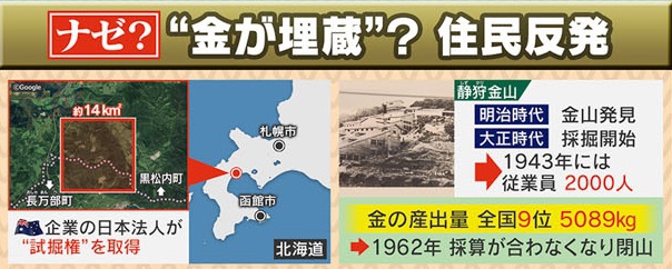 その昔、我が国を「豊富な金を有する黄金の国・ジパング」と紹介したイタリアの商人、マルコ・ポーロ。それから時が流れた今、金を巡って北海道の2つの町が揺れに揺れています。突如持ち上がった金の採掘計画に、住民らは猛反対。さらに、町長同士の意見も真っ二つ⁉一体、何が―。