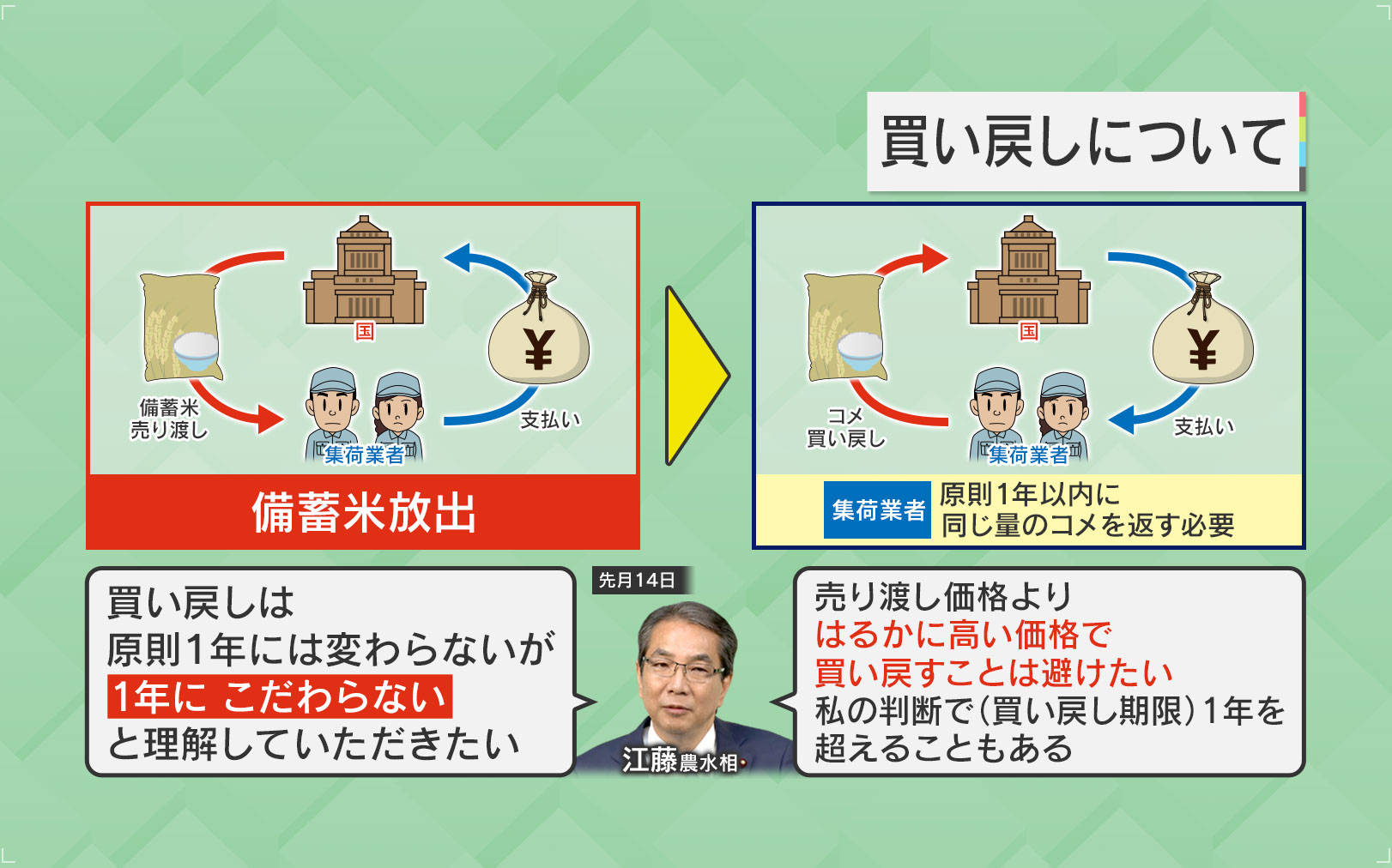 Q.『買い戻し』について江藤農水相は「1年にこだわらない」とは言っていますが、原則返さなければいけないんですね?