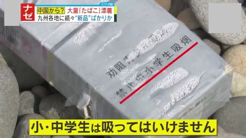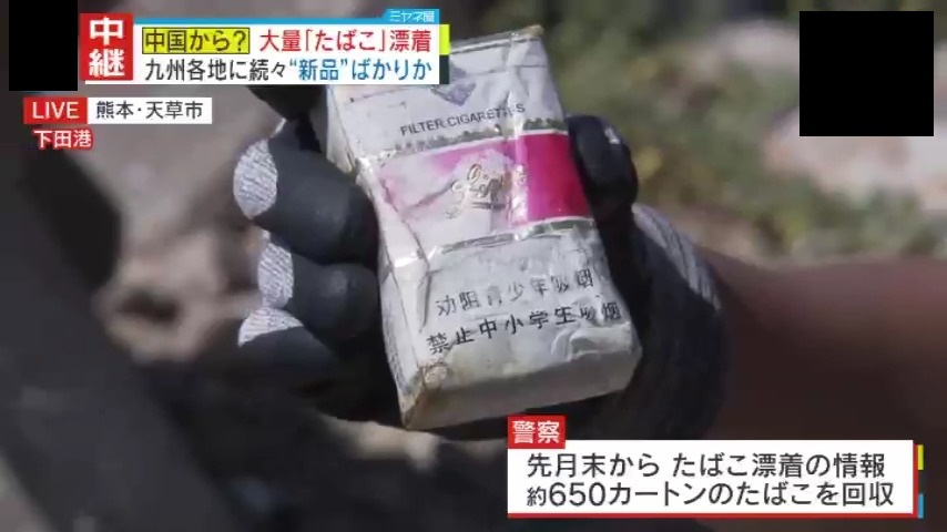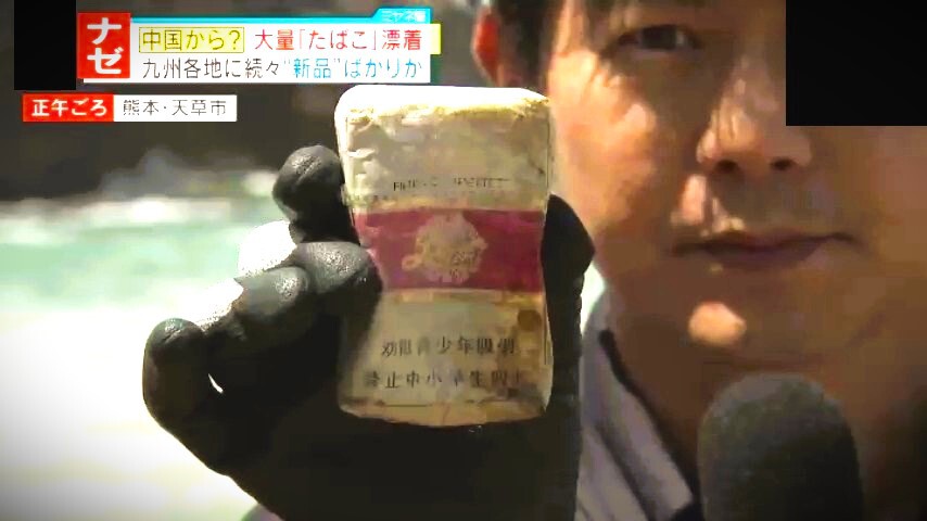 2024年7月下旬。住民から通報があり、熊本・天草市役所の職員が海岸で見たのは、明らかに中国製とわかるタバコのパッケージでした。下の部分には中国語で、「小・中学生は吸ってはいけません」と注意書きが。