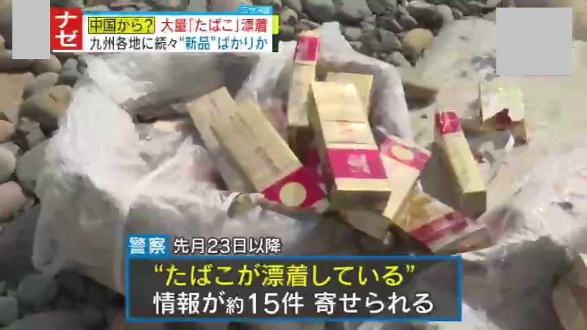 環境省は、「漂着ゴミはペットボトルなどが多く、タバコの大量漂着はあまり聞かない」として、「船の事故・コンテナを落としたなど、突発的なことが原因ではないか」としています。