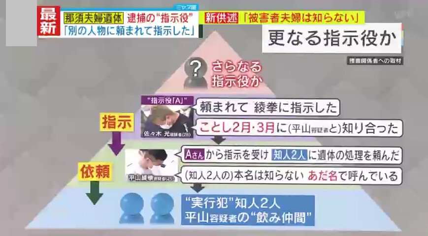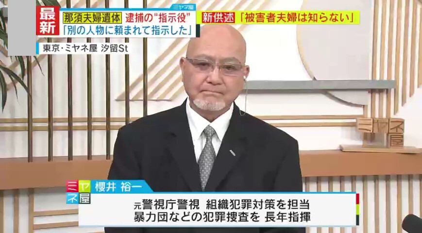 栃木・那須町で夫婦の遺体が見つかった事件。既に逮捕された平山綾拳容疑者に続き、“指示役A”とみられる男も逮捕され、「頼まれて指示した」と供述していることがわかりました。警察は、別の人物が関与しているとみて捜査を進めています。果たして黒幕は?背景には何が?組織犯罪対策などを担当された元警視庁警視・櫻井裕一氏、弁護士・野村修也氏のダブル解説です。