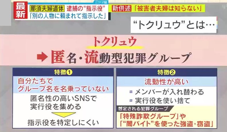「一番頂点にいる人が全体を見ていて、宝島さん夫妻がどこでどんな行動を取るのかを知った上で、それに合わせて犯行計画を練っているということはみえてきました。一方で、犯行をしている人たちの“気持ち悪さ”、あまり密な関係でもないにも関わらず残虐なことをするというのは、最近あった『広域強盗』と似ています。こういうのを、匿名・流動型犯罪グループ『トクリュウ』と呼びます。昔は半グレと呼んでいた人たちとか、最近では暴力団の対策法が強化され、『暴力団に所属していると犯罪がやりにくい』と外に出ている人たちが結構いて、そういう人たちがうまく使われているとすれば、凶悪犯罪が形を変えてきているという気がします」