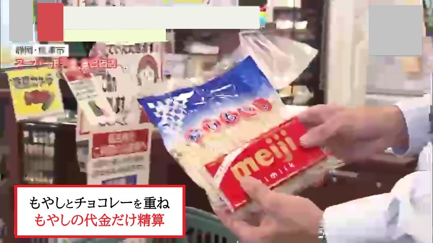 ほかには、もやしとチョコレートを重ね、安いもやしの代金だけを精算したり…