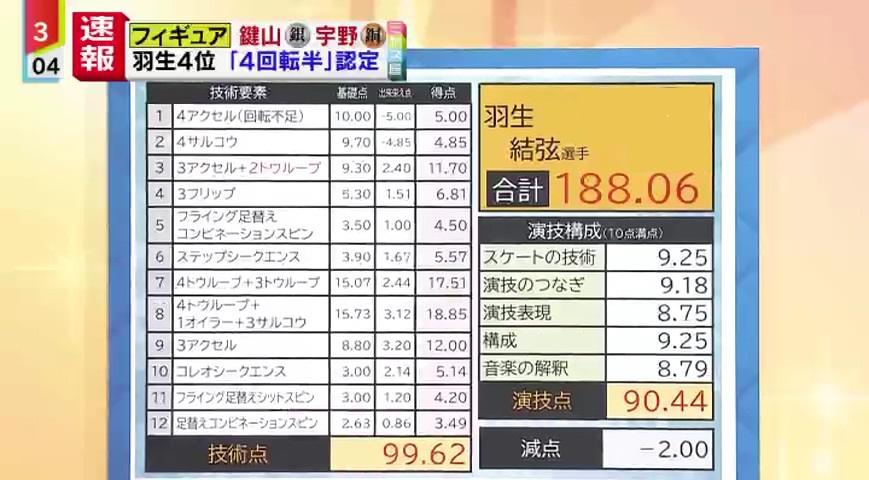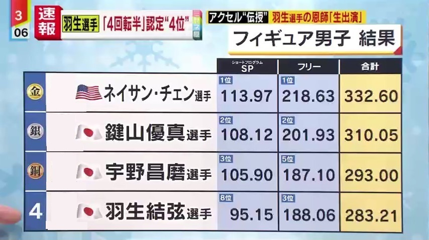 「仙台のリンクで自分一人夜中に練習して五輪に参加しました。この挑戦力に私は感謝しています。この4回転半をするために、想像もつかない試練を彼は経験して、今のような形をつくりました。」