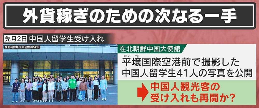 そんな北朝鮮ですが、外貨稼ぎの次なる一手として、中国人留学生の受け入れを再開しました。中国人観光客の受け入れも再開かといわれています。