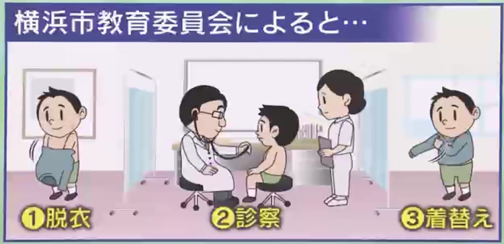 横浜市教育委員会によると、①脱衣の場所②診察の場所③着替えの場所と、パーティションなどで見えないよう3つに区切られていて、健康診断の約2週間前には各家庭に「ほけんだより」が配られ、上半身脱衣の旨を記載していました。しかし、騒動を受け、問題となった小学校では、この翌週に行われた小学1~3年生の内科検診では着衣可能にしたということです。