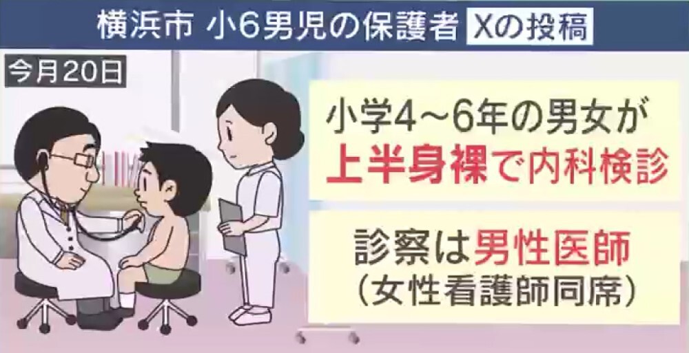 小学校で行われる『健康診断』が今、物議を醸しています。発端となったのは、神奈川・横浜市に住む男子児童(小学6年生)の保護者のSNS投稿。