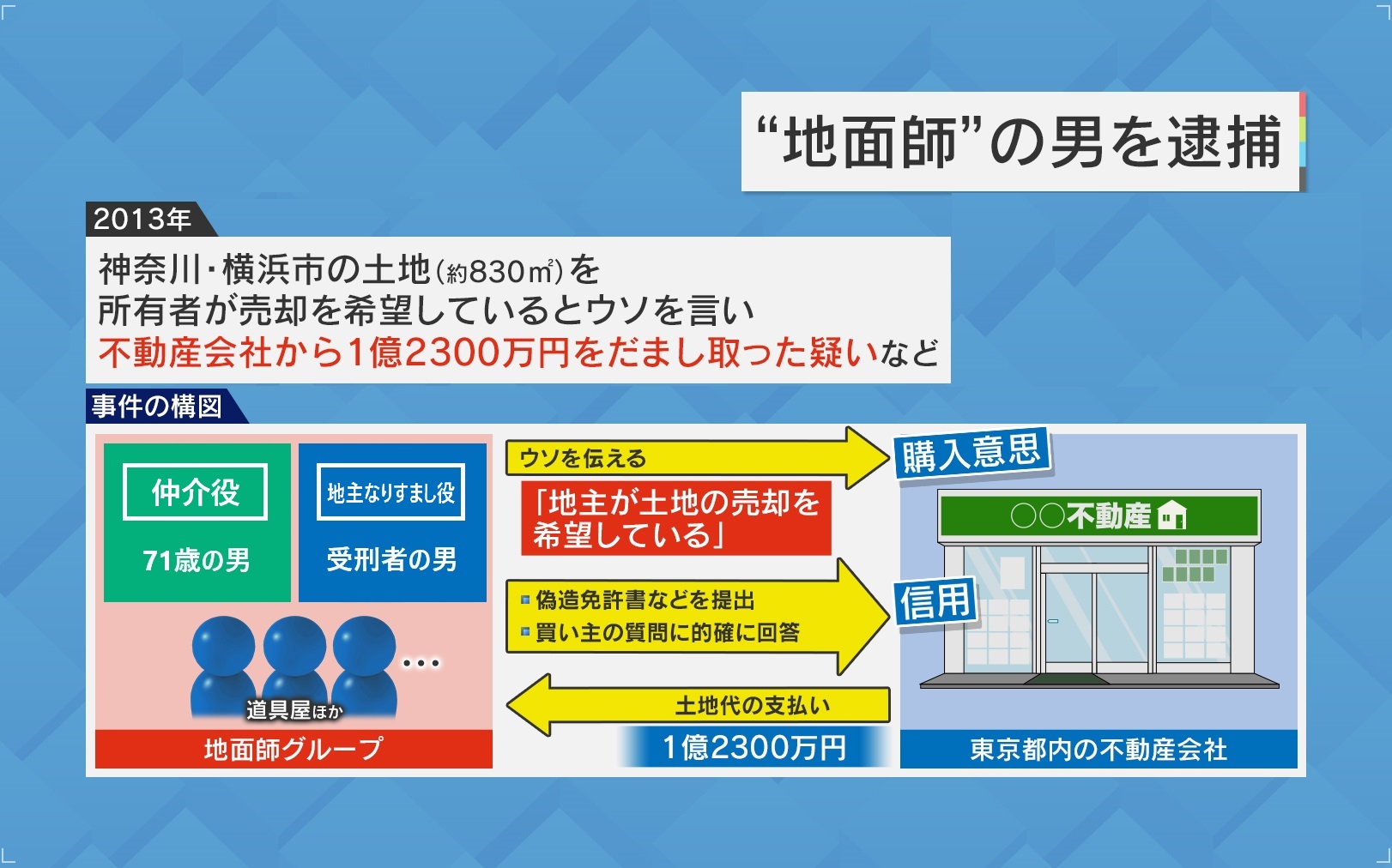 ■1億2300万円を騙し取った“地面師グループ” 仲介役の男を逮捕