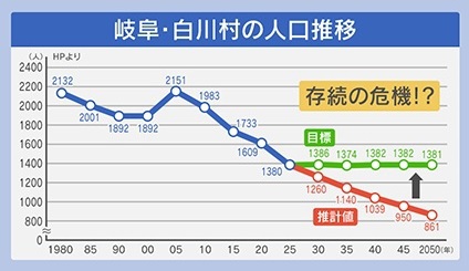 白川村の人口は、どんどん減ってきていて、今後は1000人を切るとみられています。