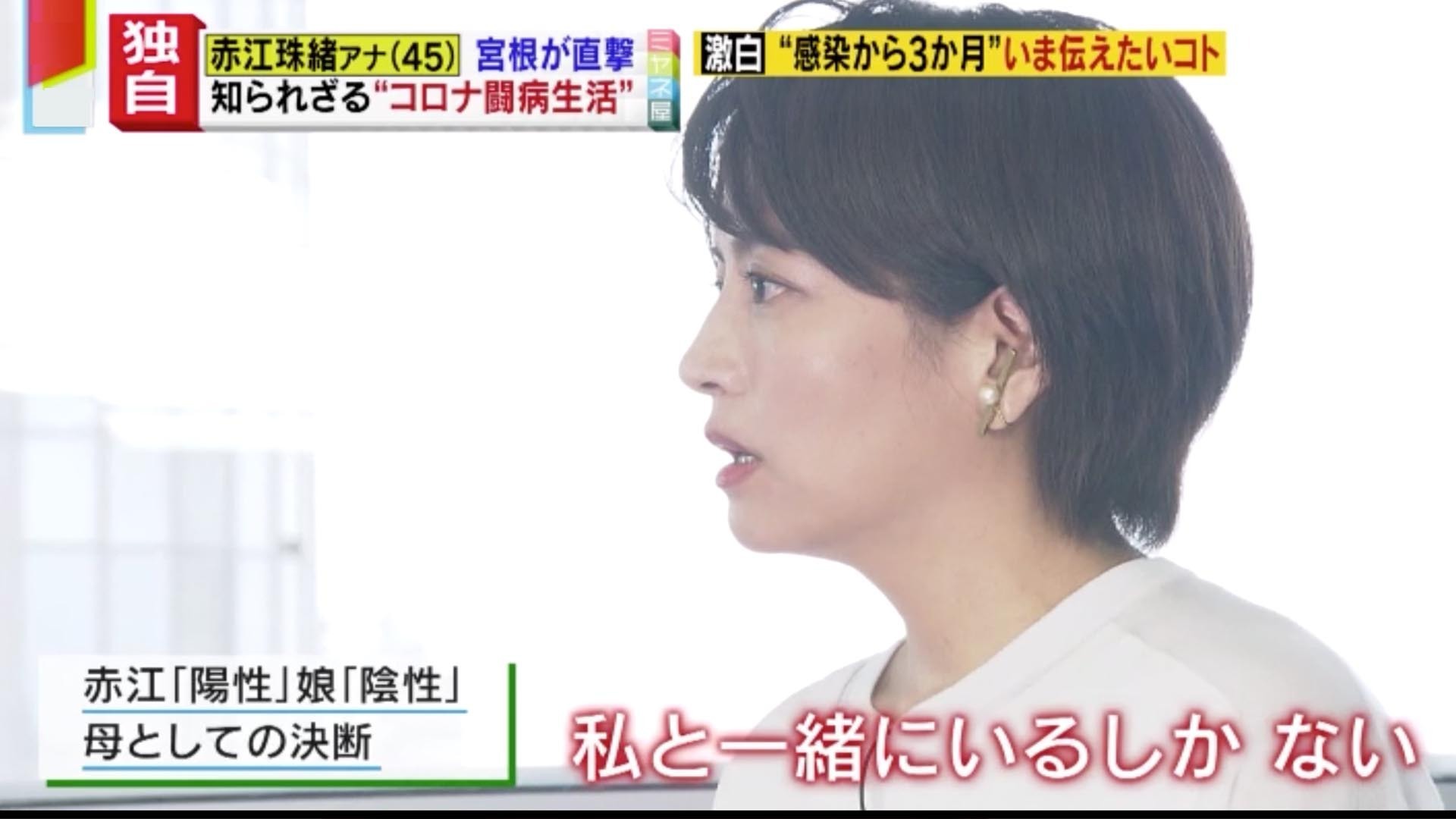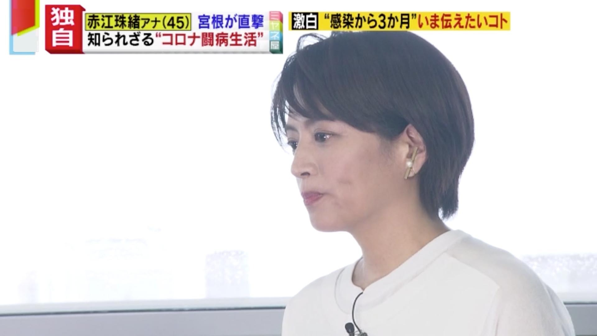そして8月から始まる新型コロナからの回復者を対象とした日本初の大規模抗体検査である「コロナ回復者専用抗体検査プロジェクト」への参加も表明。そこで朝日放送局アナ時代の後輩でもある赤江さんを、宮根誠司が直撃。知られざる闘病生活と、刻々と変化する症状の実態を赤裸々に語ってくれました。