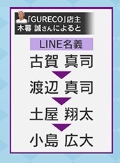 さらに木暮さんによると、男のLINEの名義は、古賀真司→渡辺真司→土屋翔太→小島広大と、だんだん変わっているといいます。