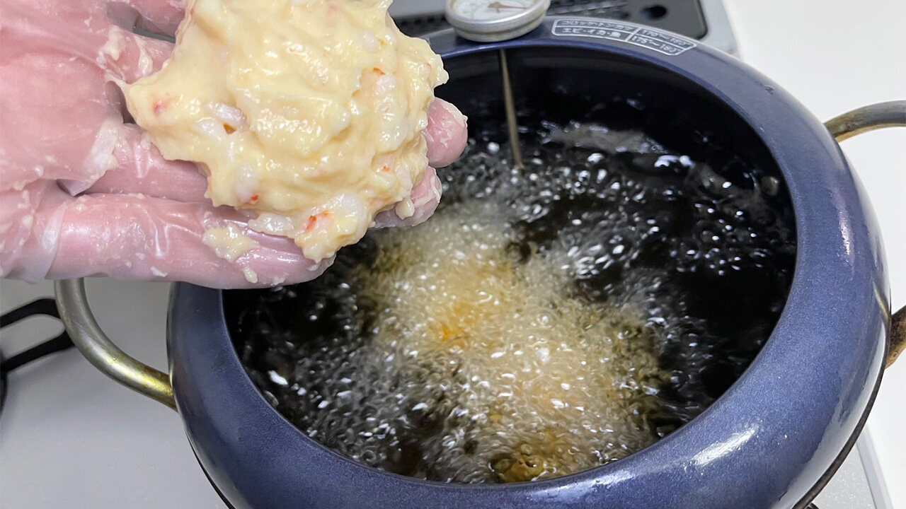 ③ 食べやすい大きさの団子状にして170℃の油で揚げる