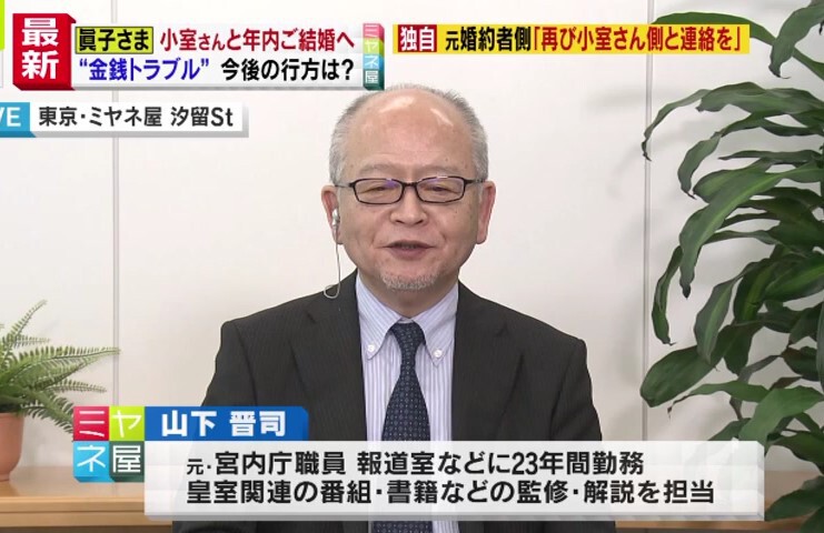 「宮内庁長官が、小室さん側の代理人弁護士と面会をして『説明責任を果たすべき方が果たしていくことが極めて重要』ということを言った、というのがありましたから、現にそこは動いたというふうに言っていいと思うんですけれども。宮内庁としても、この問題は片づくに越したことがないっていうのは当然あると思います。ただ私の見立ては、どういう事情が、色々やることあったとしても、2021年の秋の結婚というのは、2020年の段階で決めておられたんだろうと思っています。これが決着しないと結婚できないということではないと思うんです。ただそこに至るまでに、出来るだけのことをしようということだと思います。ですから、この金銭トラブルについても、小室さん側としては出来るだけ解決するようにしようとあの文書を出したり、解決金の提示をしたりしているわけです。出来るだけのことをして、駄目なら駄目でもう仕方がない、ということだと思っています。」