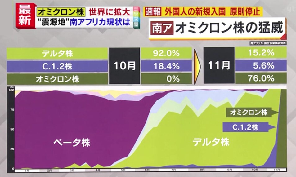 Q.「変異株は共存しない」とも言われますが、南アフリカでは「オミクロン」が出てきて「デルタ」が飲み込まれて、無くなっていくのですか?