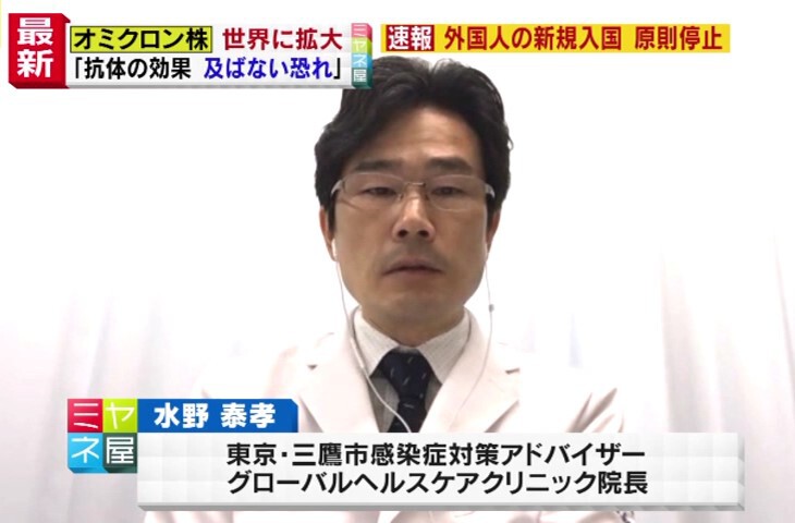 11月、南アフリカで確認された、新たな変異株「オミクロン」の感染拡大を受け、岸田総理が新たな水際対策として、11月30日から全世界からの外国人の入国を原則停止することを発表しました。これで日本への「オミクロン株」流入は防げるのでしょうか?日本感染症学会の指導医でグローバルヘルスケアクリニック院長の水野泰孝(みずの・やすたか)医師と、意思で“渡航医学”を専門としている関西福祉大学の勝田吉彰教授が独自解説します。