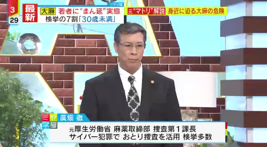 今、若者の間で“大麻汚染”が止まりません。検挙人数の7割が30代未満の若い世代だといいます。また、教育現場でも大麻がまん延し、全国の高校や大学などの学生が大麻に絡む容疑で摘発される事件が相次いでいます。若い世代に広がる“大麻汚染” 大麻が若者に広がっている原因は?一体どこから手に入れるのか?元厚労省・麻薬取締部捜査第一課長の廣畑徹氏が解説します。
