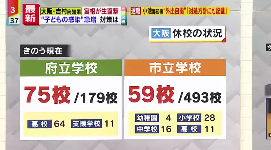 「感染者が一人でも見つかればいったん学校を止めるということをしているので、どうしても休校数が増えます。子どもにとって実際に顔を合わせて勉強をするというのは、非常に重要なことなので、きちんと感染対策をして、登校できるようにしていきたい。しかし、感染が広がるリスクもあるので、陽性者が出た場合は短い日数ですが休校にします。そして、すぐ再開できるようにしています。基礎疾患があるなど重症化リスクのある子どもがいますし、学校で感染が広がると、逆流して家庭に持ち帰ることになる、そこにも高齢者やリスクの高い人もいるので、学校のクラスターは抑えていくべきだと考えています。」