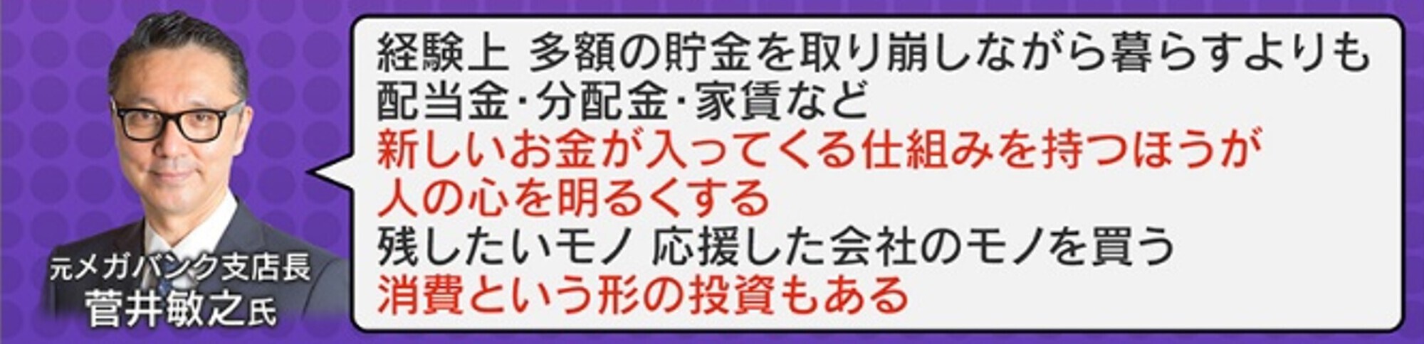 「お金がたくさんあって、それを取り崩す人よりも、預金は少ないけれど、例えば家賃や株の配当などで毎月30万円・40万円定期的に入ってくる人の方が、気持ちが明るいです」