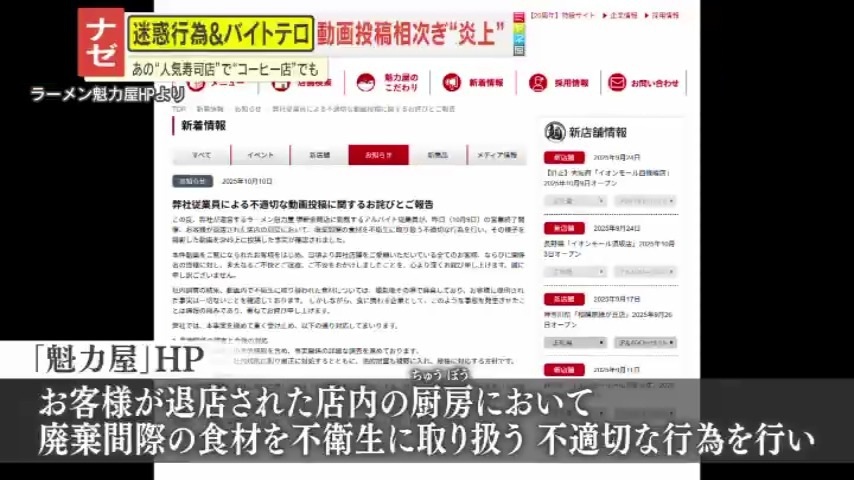 動画が撮影されたのは、1年半~2年ほど前で、それが最近SNSに投稿され、拡散したものと見られています。当該のアルバイト従業員はすでに退職しているということです。