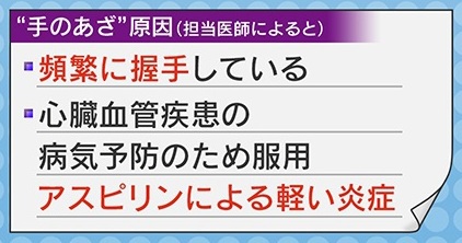 また、“手のあざ”の原因は『頻繁に握手をしていること』と『心臓血管疾患の病気予防のために服用しているアスピリンによる軽い炎症』だということです。トランプ大統領はバイデン前大統領が在任中に「健康状態を隠していた」と批判していたため、自身の検査結果を公表し、違いをアピールする狙いがあるのではないかとみられています。