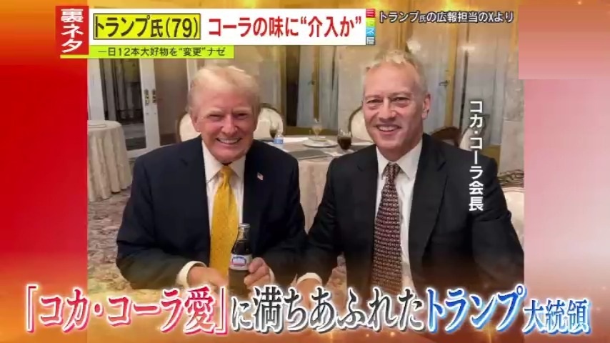 トランプ大統領は「彼らにとって非常に良い動きとなるだろう。やがて分かる。単純に、そのほうがおいしい!」と話していて、コカ・コーラ社は「トランプ氏の熱意に感謝しています。詳細について近く発表する予定」としています。