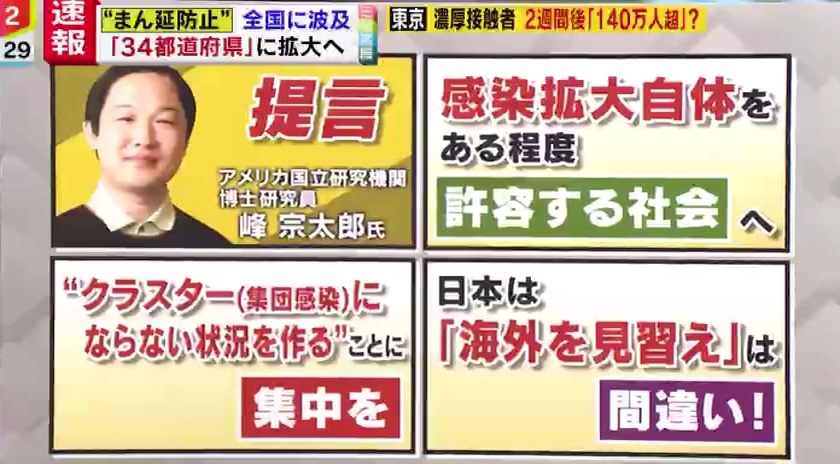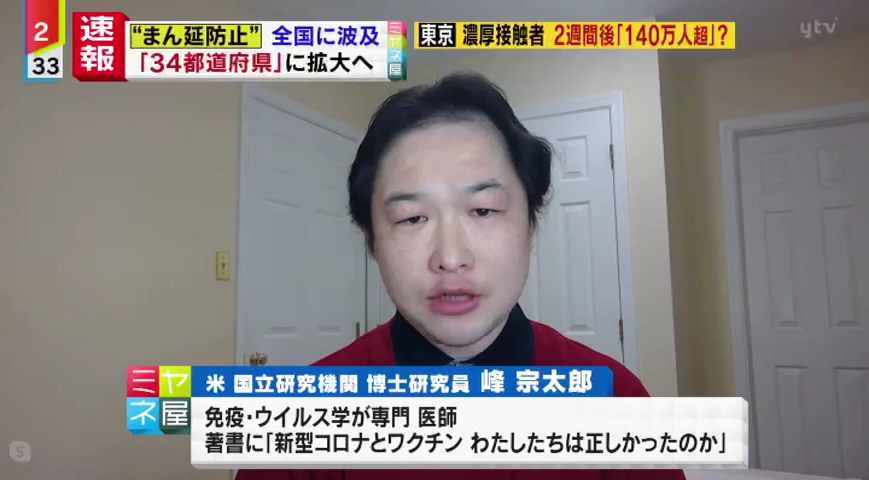 そんな中、アメリカ在住の免疫学が専門の米国国立研究機関博士研究員 峰 宗太郎(みね・そうたろう)医師が日本に3つの提言をしました。
