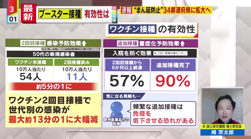 「まずは、ワクチンの3回目接種がイギリスのように高い割合になってくれること、そして経口治療薬が速やかに使える体制と、しっかりとした検査ができ、陽性の患者にはすぐに治療が行える環境が整うことが何より重要と考えます。3回目の接種に関しては、高齢者などリスクの高い人に関しては、確実に重症予防の効果がありますので、しっかりと進めていくべきと思います。」
