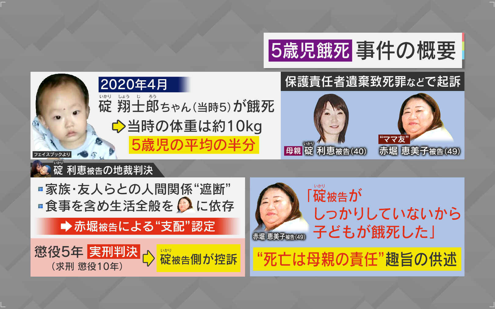 2020年4月、福岡県篠栗町で、当時5歳の碇翔士郎ちゃんが餓死し、母親の碇利恵被告が懲役5年の実刑判決を言い渡された事件で、その母親や子どもを精神的に支配していたとされる“ママ友”の赤堀恵美子被告の判決が、9月21日に言い渡されました。この判決が意味するものはなんだったのでしょうか。清原博弁護士が解説します。