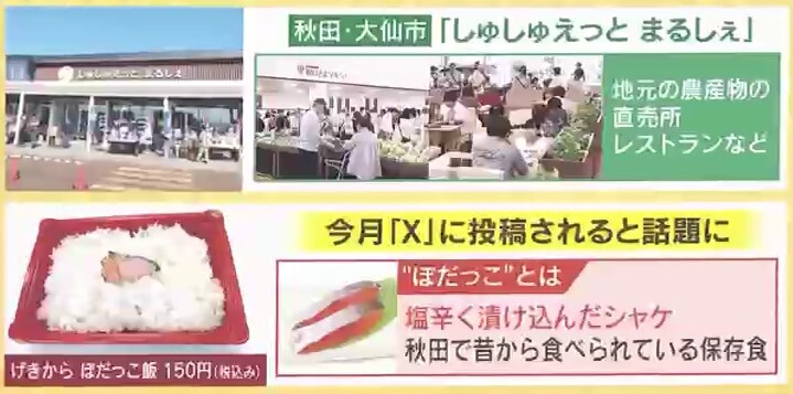 “極小シャケ”弁当は『げきから ぼだっこ飯』として、秋田・大仙市にある「しゅしゅえっと まるしぇ」で売られているもので、2024年4月「X」に投稿されて話題になりました。『ぼだっこ』とは塩辛く漬け込んだシャケのことで、秋田で昔から食べられている保存食です。
