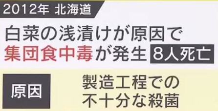 背景には、全国で漬物が原因の食中毒が増えたことがあります。2012年に北海道で、白菜の浅漬けを食べて集団食中毒が発生し、8人が死亡。原因は、製造工程での不十分な殺菌でした。