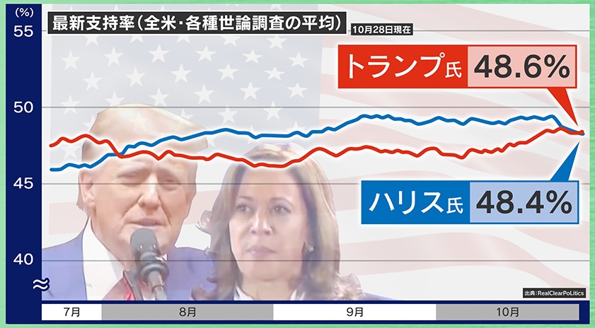 ■支持率拮抗にアメリカ国民“危機感” 世論調査会社が「トランプ氏に有利な数字を出してくる」ワケ