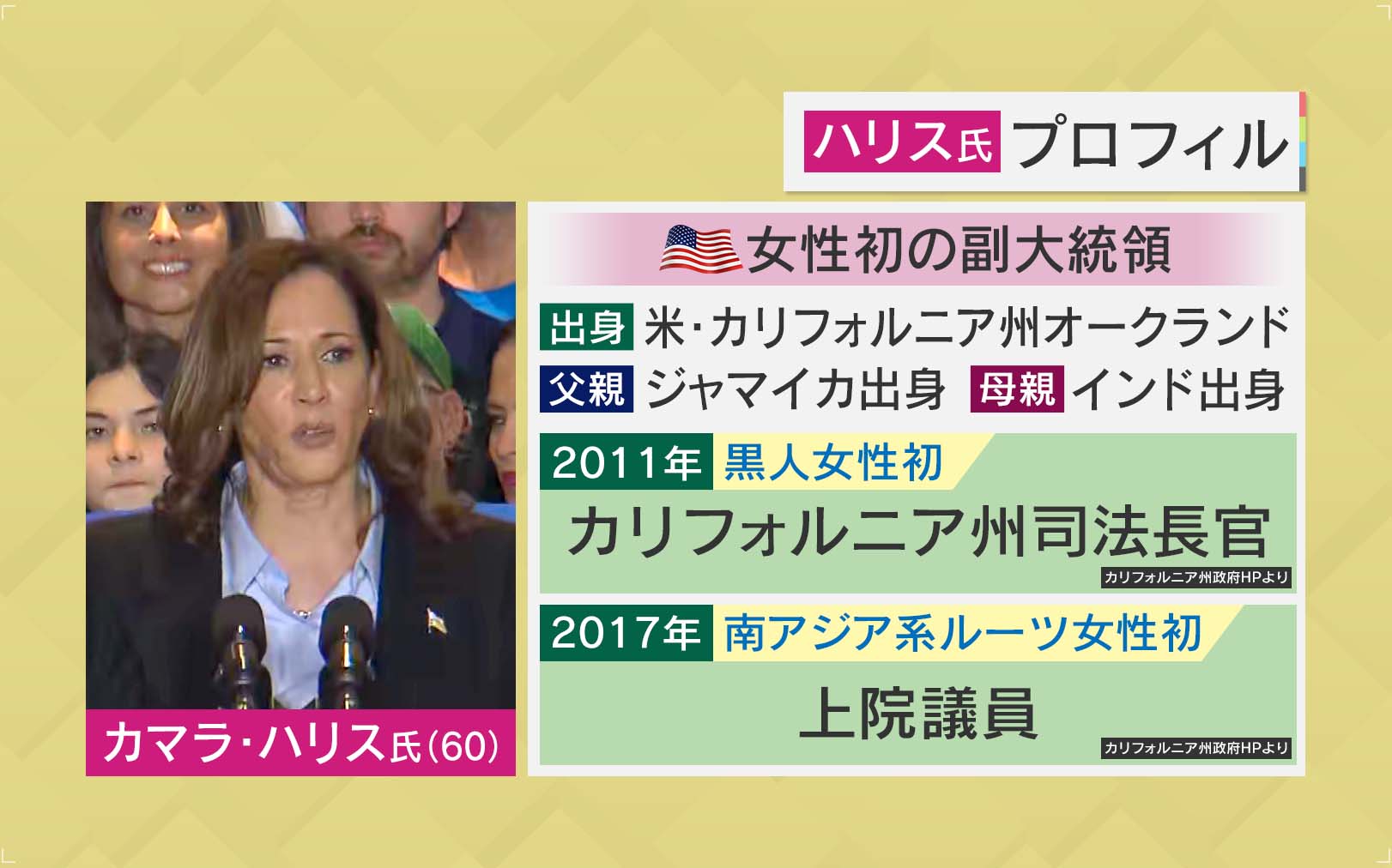 アメリカで女性初の副大統領となったカマラ・ハリス氏は米・カリフォルニア州オークランド出身で、父親はジャマイカ出身・母親はインド出身です。2011年に黒人女性初のカリフォルニア州司法長官となり、2017年には南アジア系ルーツ女性初の上院議員となりました。