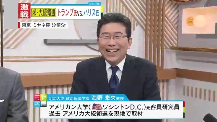 史上稀に見る大接戦を繰り広げるアメリカ大統領選。支持率はトランプ氏がややリードしていますが、その裏にある事情とは?ハリス氏に吹く逆風とは?明治大学・海野素央(うんのもとお)教授とデーブ・スペクターさんのダブル解説です。