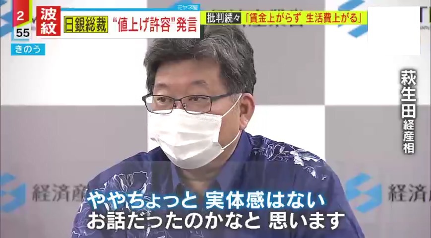 「ちょっと実態感がない話だったのかなと思います」(萩生田経産相)