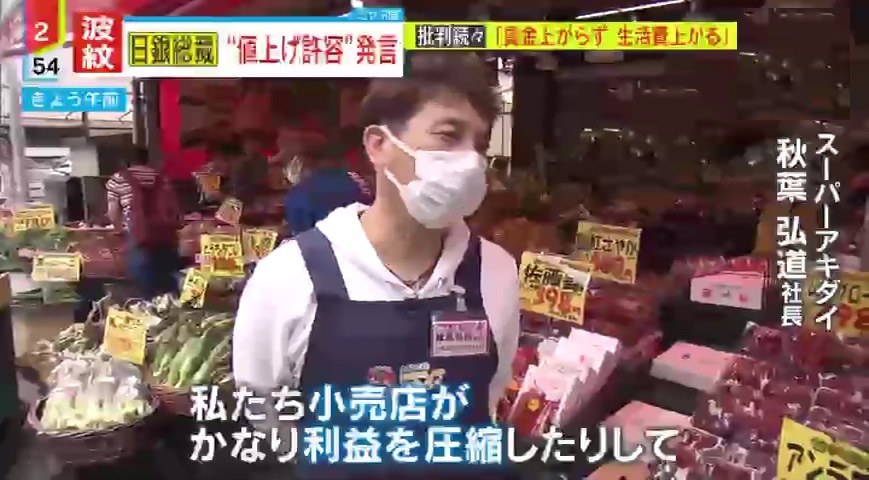 「私たち小売店が利益を圧縮したり、負担を強いられている状況なのを分かっていないと思います。もう少し私たち庶民の目線になって、現状を見たら色々分かるんじゃないかと思います」(スーパーアキダイ 秋葉弘道社長)