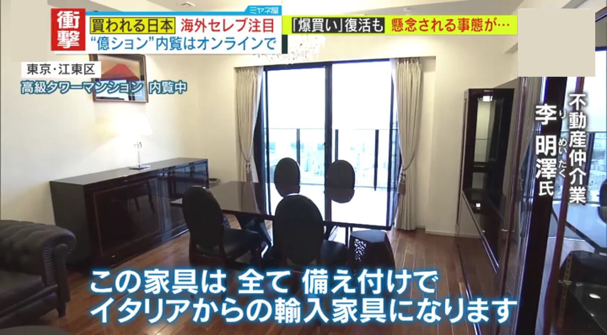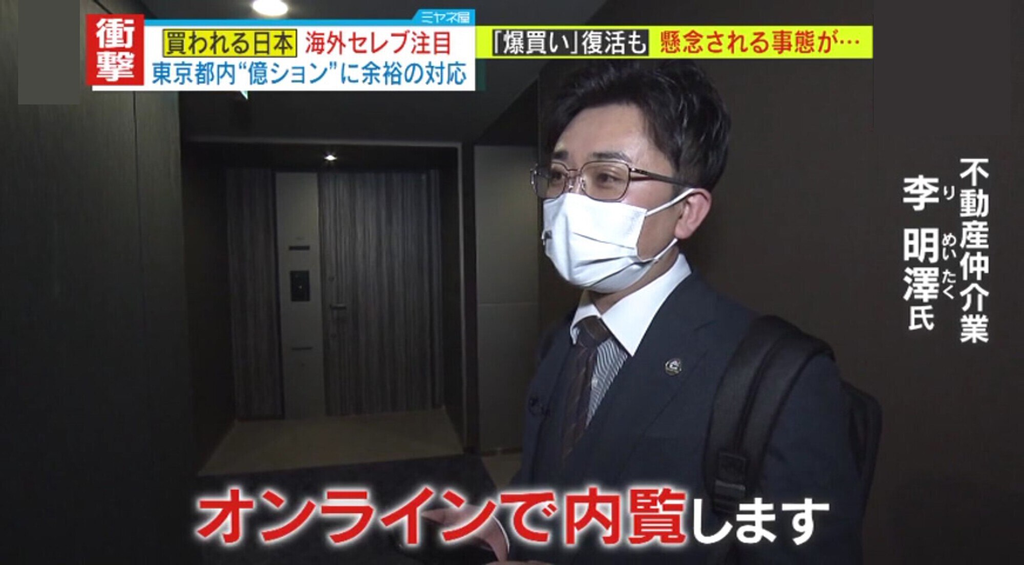 「ミヤネ屋」スタッフが訪ねたのは、都内の不動産会社で営業を担当している李明澤さん。この日、日本でマンション購入を検討している外国人の内覧に同行しました。場所は東京・豊洲地区で、2022年3月に入居が始まったばかりの、48階建て新築・高級タワーマンションです。下見する物件は46階のプレミアムフロアにあり、価格は"億"を下りません。