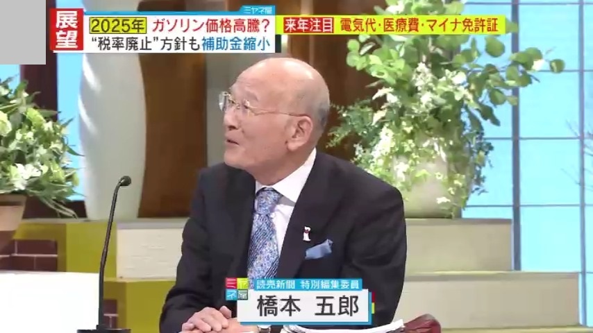 円安やウクライナ侵攻の影響などで年々物価が高騰する中、2025年はこれまでよりも値上げされる恐れが。ガソリンが2月には185円/Lに?一方で、過去最高の税収を更新見込みのワケは?元経産官僚・岸博幸氏、『読売新聞』特別編集委員・橋本五郎氏のダブル解説です。
