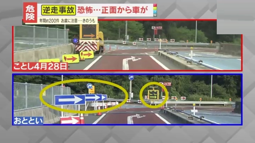 GWの事故から約3か月半が経った8月9日、番組の取材班が現場へ向かうと、事故を受け、電光掲示板や矢印看板など様々な対策が施されていました。