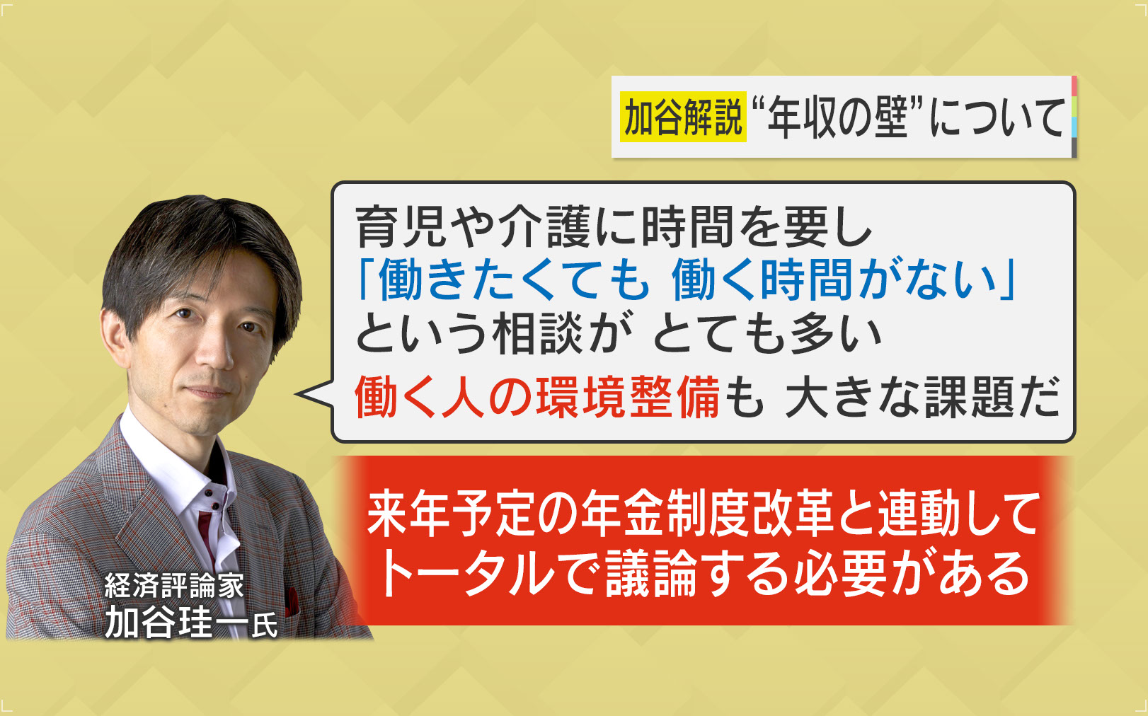 しかし、“働く人の環境整備”にも大きな課題が残っています。加谷氏は「育児や介護に時間を要し、『働きたくても働く時間がない』という相談がとても多い」と話していて、2025年予定の年金制度改革と連動して、トータルで議論する必要があると指摘します。