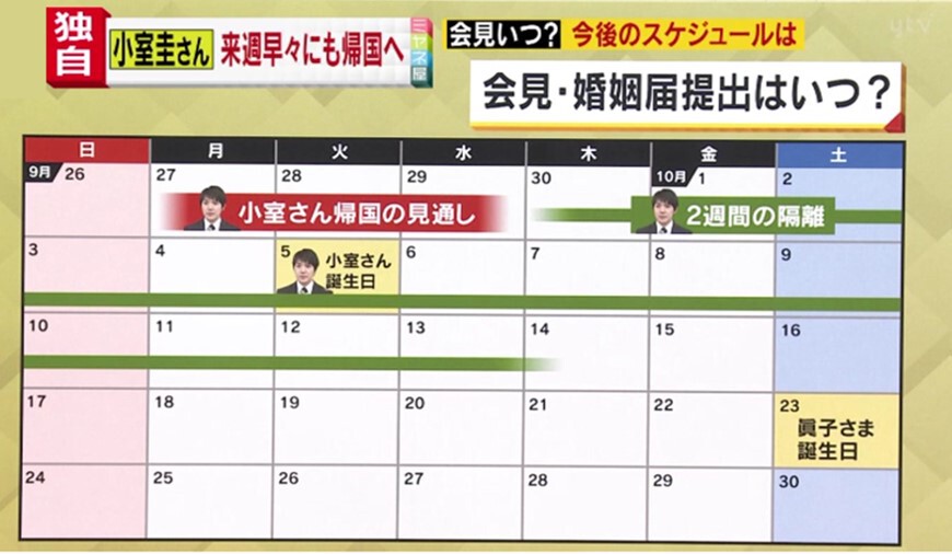 「そうですね。会見は、結婚されたらじゃなくて、結婚される段階になったらっていうことなんで。直前で、例えば10月22日に婚姻届を提出されるのであれば、21日っていう可能性もあるでしょうし。おそらく、22日よりも1週間前のどこかだろうとは思います。ですからギリギリの日程ですよね。非常にタイトです。10月13日、14日ぐらいで小室さんの帰国後の自主隔離が終わって1週間ぐらいで記者会見と婚姻届提出ということになると私は思っています。宮内庁の正式発表は、ひょっとしたら1週間を切る可能性もあって、そのあたりはそのいつになるのか。それと皇室経済会議がどうなるのか、結論出てないんですよね」
