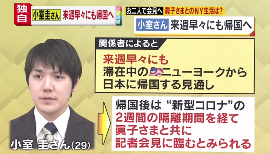 Q.小室さんが来週早々にも帰国という情報は、どこから出てくる?