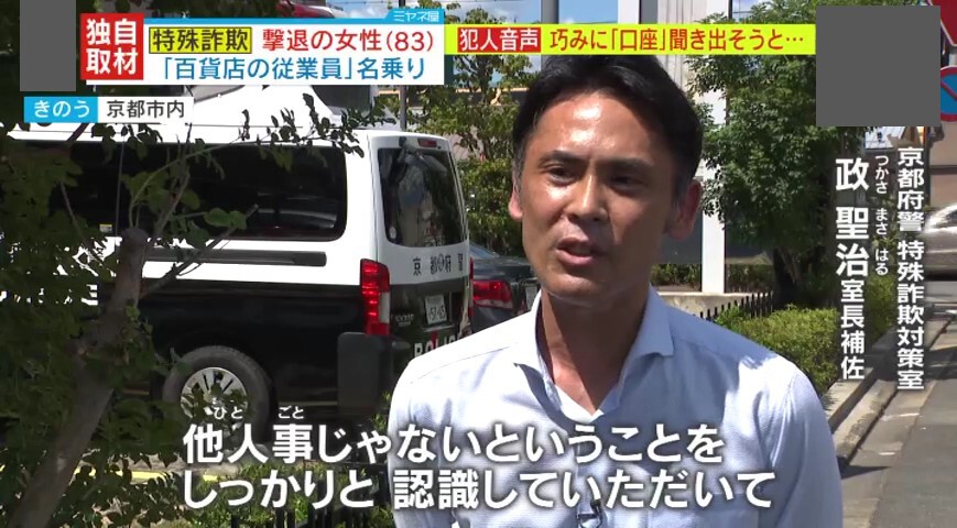 (京都府警・特殊詐欺対策室 政聖治(つかさまさはる)室長補佐)