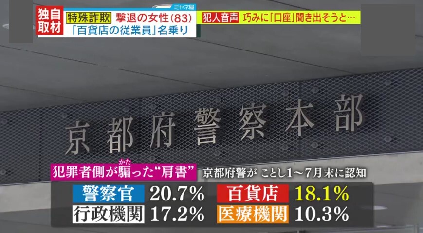 実は、京都府警が2023年1月から7月の間に認知した特殊詐欺電話のうち、百貨店を騙るものが警察官に次いで2番目に多いといいます。信頼感の高い“百貨店ブランド”を利用した手口です。