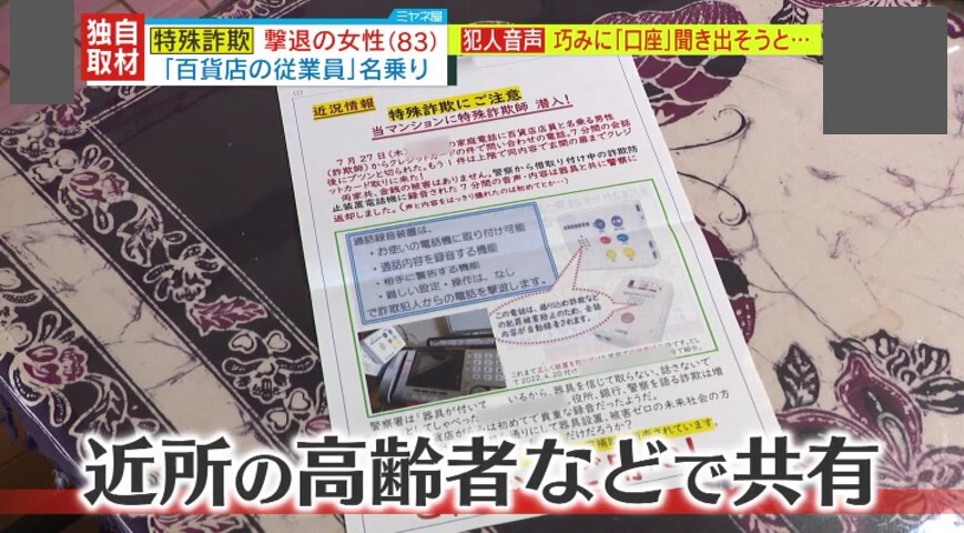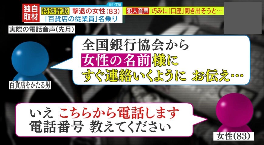 【独自取材】83歳女性が特殊詐欺撃退!急増する“百貨店騙り” 「クレカが犯罪者に偽造された」・「『全国銀行協会』から連絡を」…警察も警鐘「非常に巧妙化 」